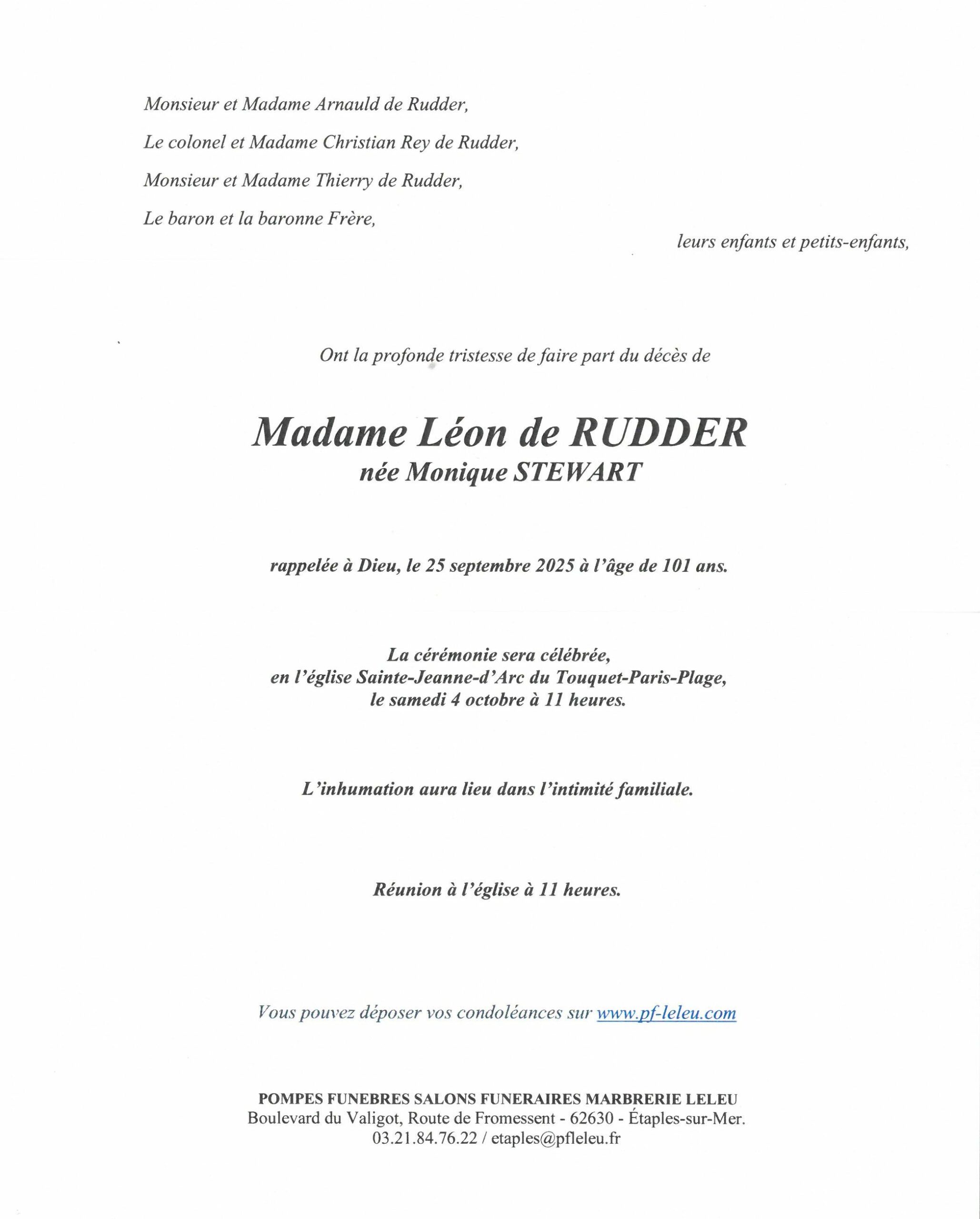Église Sainte-Jeanne-d'Arc du Touquet-Paris-Plage, suivie de l'inhumation qui aura lieu dans l'intimité familiale.