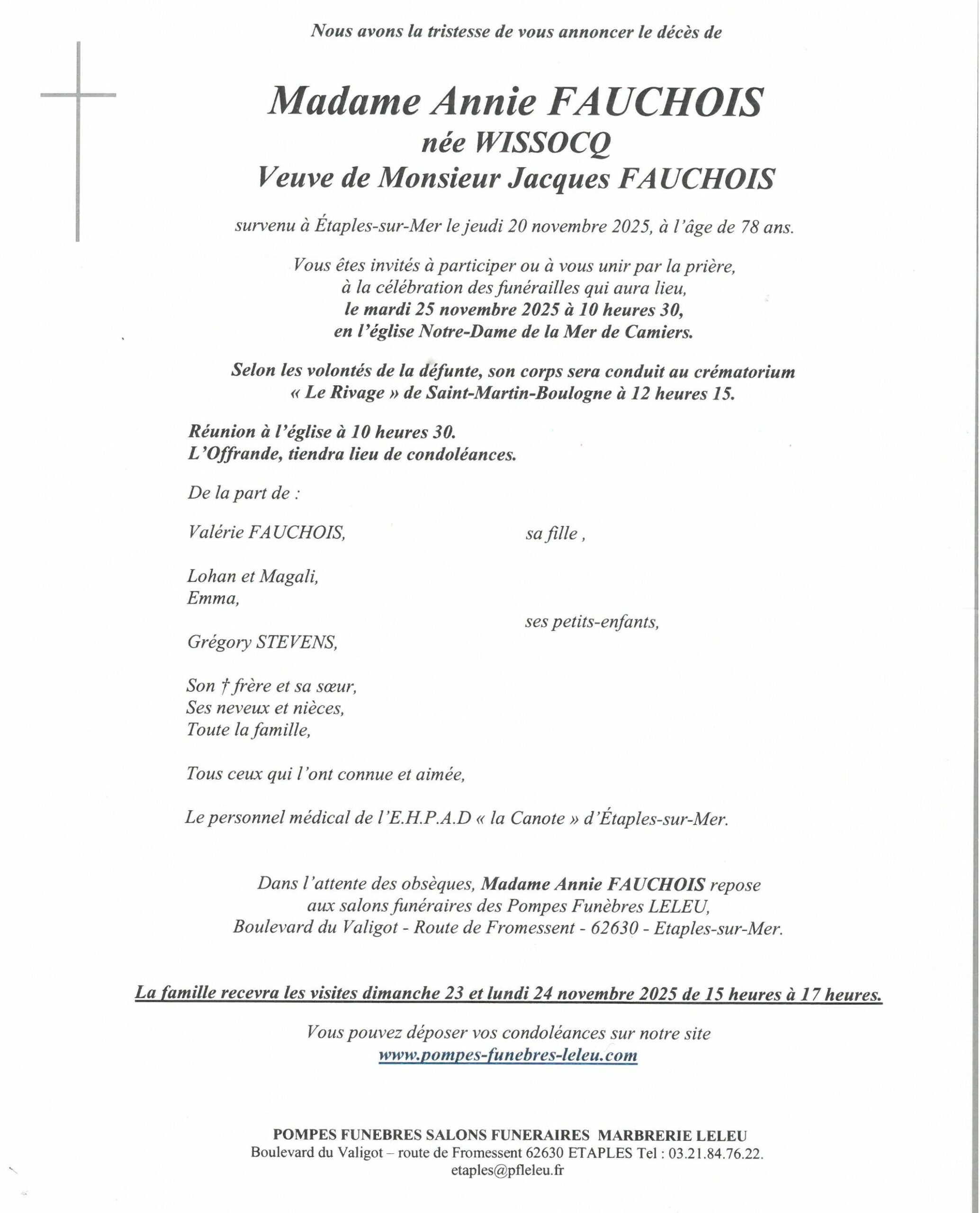 Annie FAUCHOIS née WISSOCQ