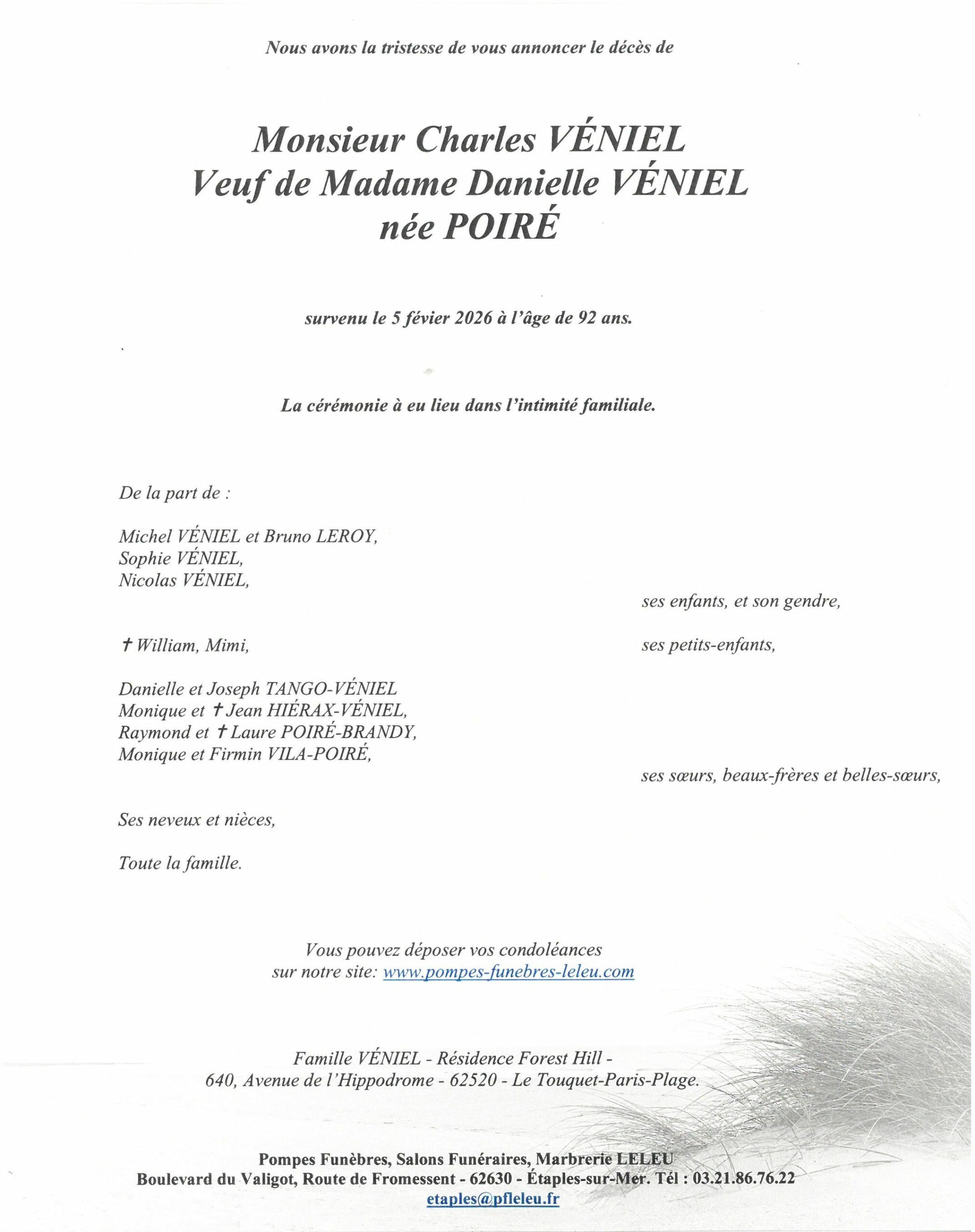 Salons des Pompes Funèbres LELEU d'Étaples-sur-Mer. L'inhumation aura lieu au cimetière duTouquet-Paris-Plage.